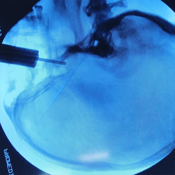 Descompresión de la fosa posterior, se extrae una pequeña sección de hueso de la parte posterior del cráneo, aliviando la presión al darle más espacio al cerebro.